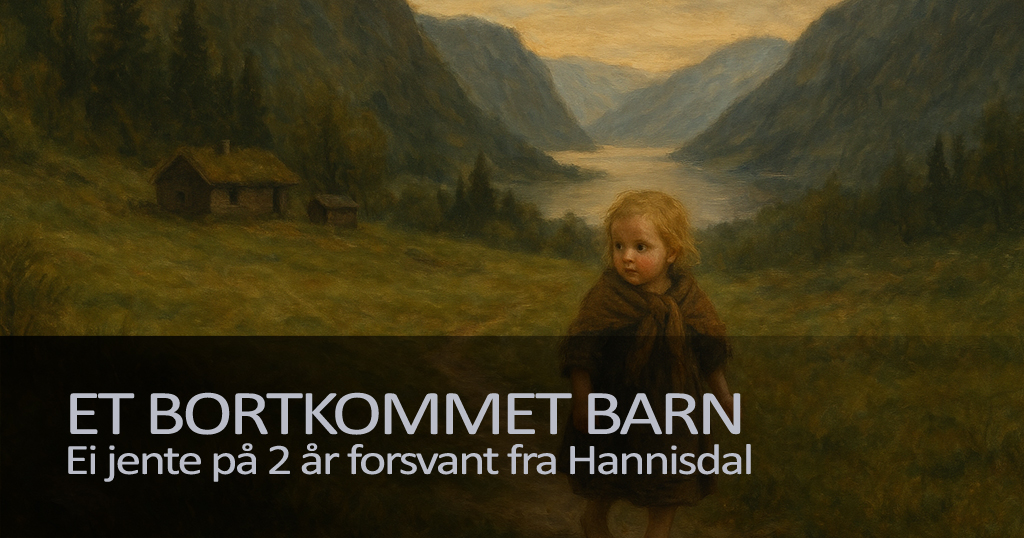 Min tipp-tipp-oldefar Lars Nilsen Koppen (1839-1919) var en ivrig dagbokskribent og førte ned alt fra hvor han hadde jobbet, når ulike hus var satt opp, hvem som ble født, når folk døde og hverdagshendelser. En av de historiene han har skrevet ned er da om et bortkommet barn fra Hannisdal.