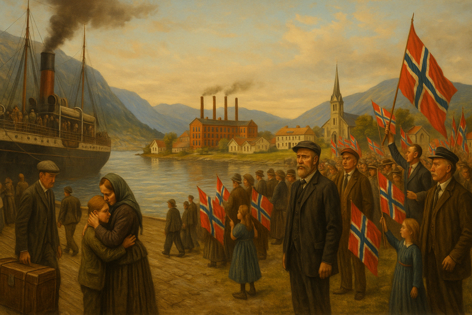 Samtidig var industristedet sårbart for økonomiske svingninger. Mot slutten av 1890-årene opplevde Arne-fabrikkene motgang. I 1897 sa Sverige opp Mellomriksloven, som inntil da hadde gitt norsk tekstilindustri tollfordeler på det svenske markedet. Dette, kombinert med dyrere råvarer (bomullsprisene steg) og generell nedgangskonjunktur, førte til at den tidligere så sterke veksten i Ytre Arna stanset opp. Unge i bygda fikk vanskeligere med å finne arbeid, og mange så seg nødt til å søke lykken utenfor. Utvandringen til Amerika skjøt fart – både Ole Brudviks egen bror Peter Eriksen reiste over og bosatte seg i Minnesota på 1880-tallet, og som nevnt utvandret også sønnen Olav i 1907. Dette var del av en bred nasjonal trend: over 800 000 nordmenn emigrerte til USA på slutten av 1800- og begynnelsen av 1900-tallet.
