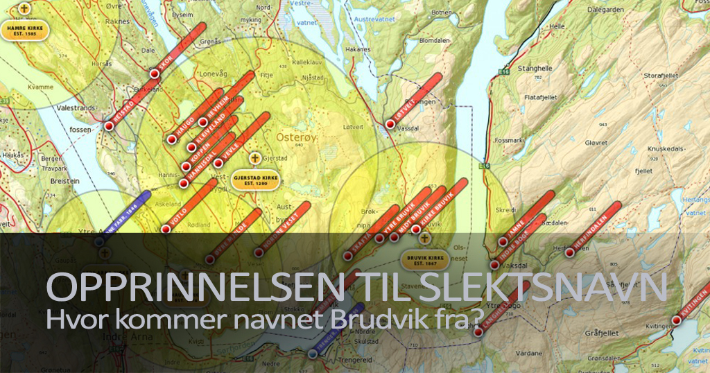 Øst for Bergen finner vi øyen Osterøy, hvor man da finner dagens «Bruvik». I dette området har vi da både Ytre, Indre og Kirke-Bruvik – og noe innover på øya så finner vi Koppen, Veseth, Hannisdal og Løtvedt. Dette er da hovedgrunnlaget for den slekten vi er i dag.
