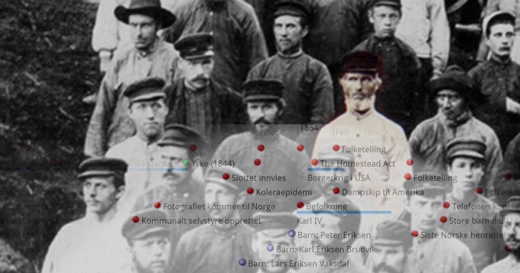 Ved å plassere min tipp-tipp-tippoldefar Erik Larsen Brudvik (1818–1897) i en historisk kontekst, får vi øye på et liv midt i store samfunnsendringer: fra koleraepidemier og industrialisering til parlamentarisme, jernbane og bilen i 1895. En tidslinje gir ikke bare fakta – den gir liv til menneskene i slekten vår.