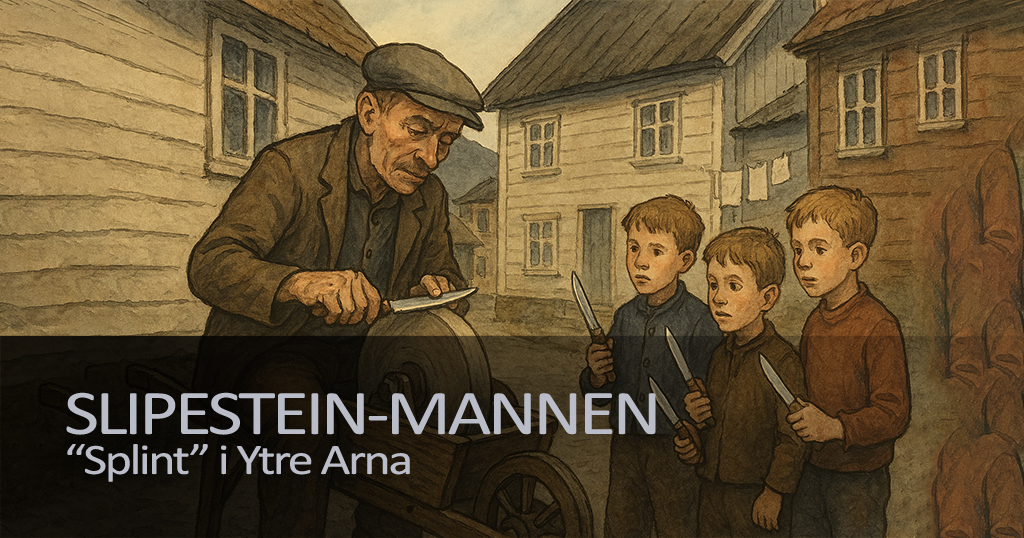 I min barndom kom splintene og knivsliperen rekende til Ytre Arna – kvinner som solgte bånd og blonder, og menn med slipestein på trillebår. Vi guttunger sprang som budstikke med kniver til sliping, og beundret kunsten når et gresstrå ble kuttet rent. En svunnen tid, da alt fikk nytt liv – i stedet for å kastes.
